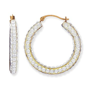 14k Two-Tone 25Mx4M Round 4- sided Hoop Earrings