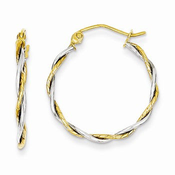 14k Two-tone Polished 1.8mm Twisted Hoop Earrings