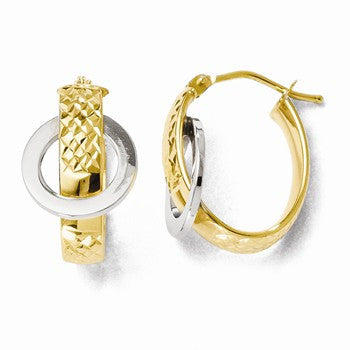 14k Two-tone Polished and Diamond-cut Oval Hinged Hoop Earrings
