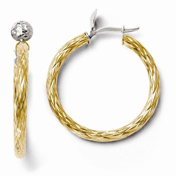 14k Two-tone Polished, Textured and Diamond-cut Hoop Earrings