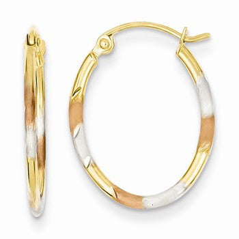 14k White and Rose Rhodium Diamond-cut Hoop Earrings