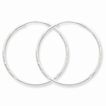 14k White Gold 1.5mm Diamond-cut Endless Hoop Earrings