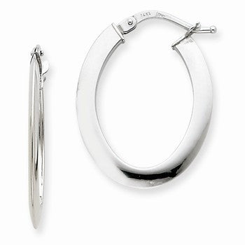 14k White Gold 1.5mm Polished Flat Oval Hoop Earrings
