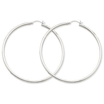 14k White Gold 2.5mm Lightweight Round Hoop Earrings