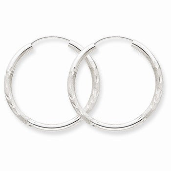 14k White Gold 2mm Diamond-cut Endless Hoop Earrings