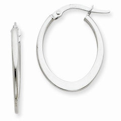 14k White Gold 2mm Tapered Oval Polished Hoop Earrings