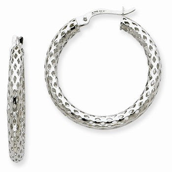 14k White Gold 3.5mm Mesh Round Hoop Earrings