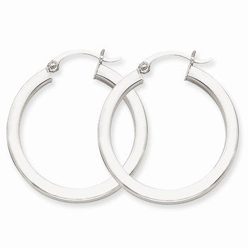 14k White Gold 3mm Polished Square Tube Hoop Earrings