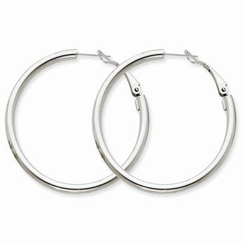 14k White Gold 3x35mm Polished Round Hoop Earrings
