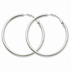 14k White Gold 3x40mm Polished Round Hoop Earrings
