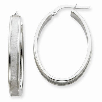 14k White Gold 4.5mm Satin Oval Hoop Earrings