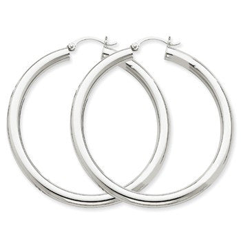 14k White Gold 4mm x 50mm Tube Hoop Earrings