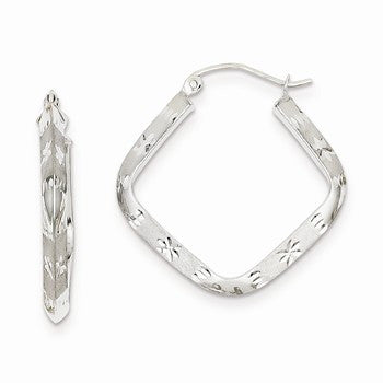 14k White Gold Diamond-cut 2.75mm Square Hoop Earrings
