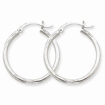 14k White Gold Diamond-cut 2mm Round Tube Hoop Earrings