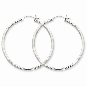 14k White Gold Diamond-cut 2mm Round Tube Hoop Earrings
