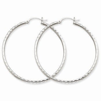 14k White Gold Diamond-cut 2mm Round Tube Hoop Earrings