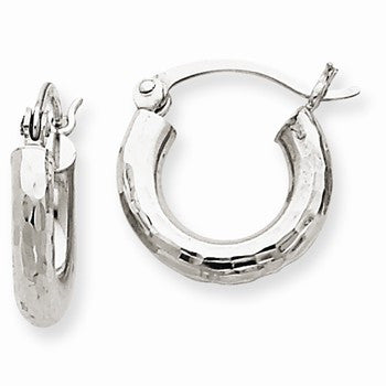 14k White Gold Diamond-cut 3mm Round Hoop Earrings