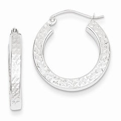 14k White Gold Diamond-cut 3x20mm Square Tube Hoop Earrings