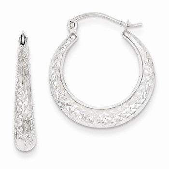 14k White Gold Diamond-cut Hollow Hoop Earrings