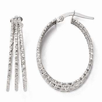 14k White Gold Diamond-cut Triple Oval Hoop Earrings