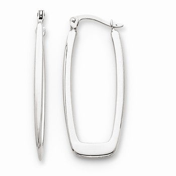 14k White Gold Polished 2.25mm Rectangle Hoop Earrings