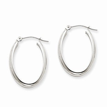 14k White Gold Polished 3.75mm Oval Tube Hoop Earrings