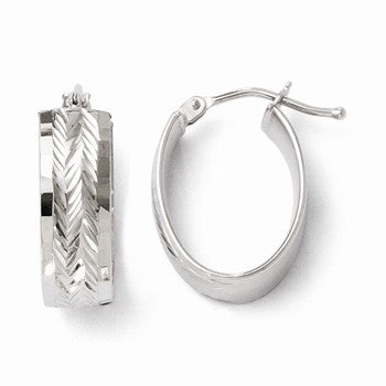 14k White Gold Polished and Diamond-cut Oval Hoop Earrings