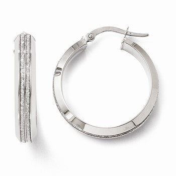 14k White Gold Polished and Glitter Infused Hoop Earrings
