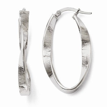 14k White Gold Polished and Textured Oval Hoop Earrings