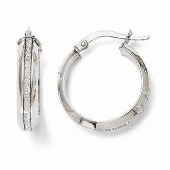 14k White Gold Polished Glitter Infused Hoop Earrings