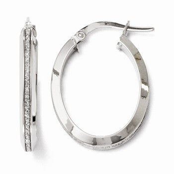 14k White Gold Polished Glitter Infused Oval Hoop Earrings