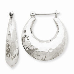 14k White Gold Polished Hammered Hoop Earrings