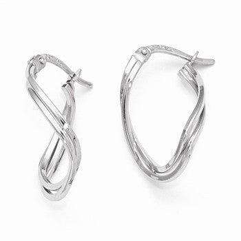 14k White Gold Polished Oval Hinged Hoop Earrings