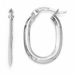 14k White Gold Polished Oval Hinged Hoop Earrings