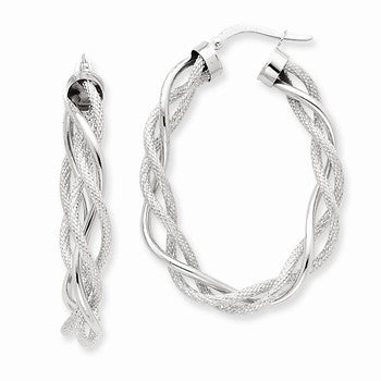 14k White Gold Polished Satin Twisted Oval Hoop Earrings