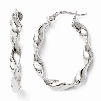 14k White Gold Polished Twisted Oval Hoop Earrings
