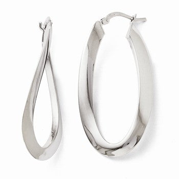 14k White Gold Polished Twisted Oval Hoop Earrings