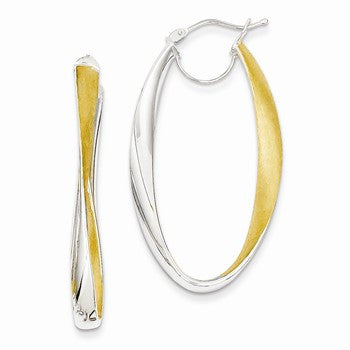 14k White Gold Rhodium Oval Hoop Earrings