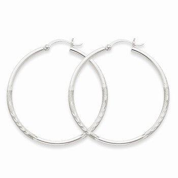 14k White Gold Satin Diamond-cut 2mm Round Hoop Earrings