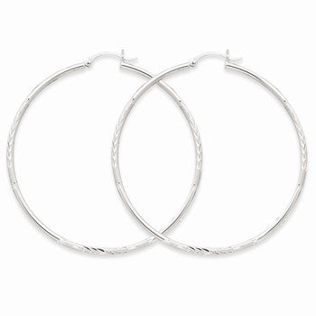 14k White Gold Satin Diamond-cut 2mm Round Hoop Earrings