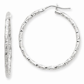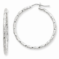 14k White Gold Textured Hoop Earrings