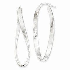 14k White Gold Textured Twisted Oval Hoop Earrings