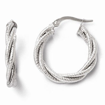 14k White Gold Twisted Triple Twist Hoop Earrings