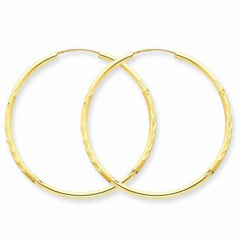 14k Yellow Gold 1.5mm Satin Diamond-cut Endless Hoop Earrings