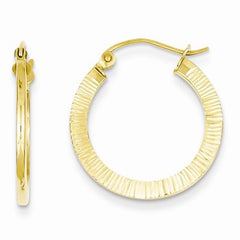 14k Yellow Gold 1-Sided Textured Hoop Earrings