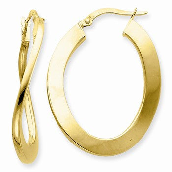 14k Yellow Gold 2.25mm Polished Twisted Oval Hoop Earrings