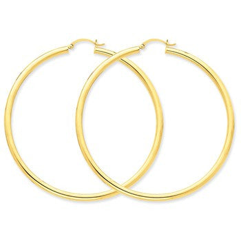 14k Yellow Gold 3mm Light Tube Hoop Earrings