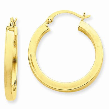 14k Yellow Gold 3mm Polished Square Hoop Earrings