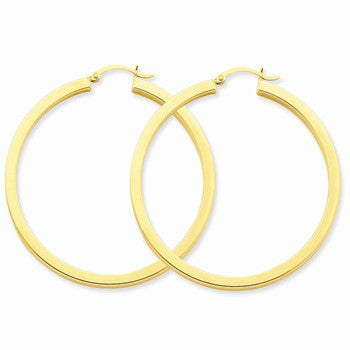 14k Yellow Gold 3mm Polished Square Hoop Earrings