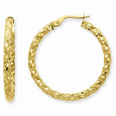 14k Yellow Gold 3mm Textured Round Hoop Earrings